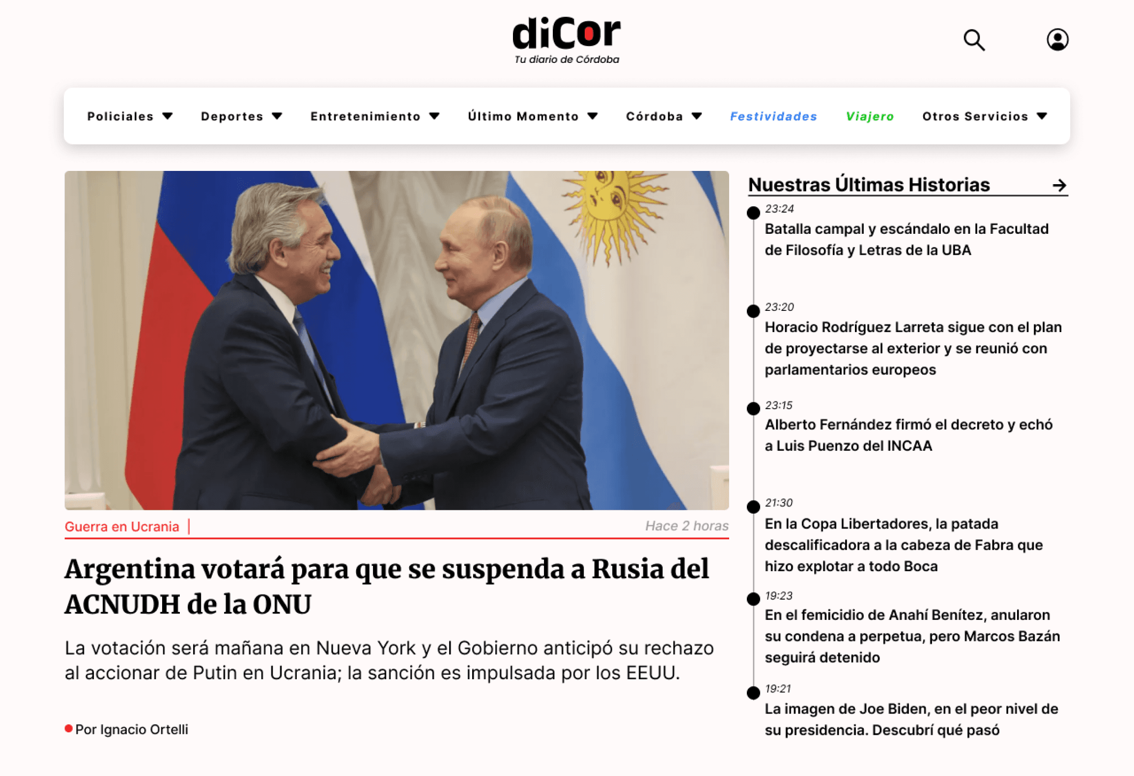 “El Diario de Córdoba” se rediseñó como “diCor”, se diseño un sitio web principal y un micrositio, ambos con las pantallas de home, home 2, sección y articulo.