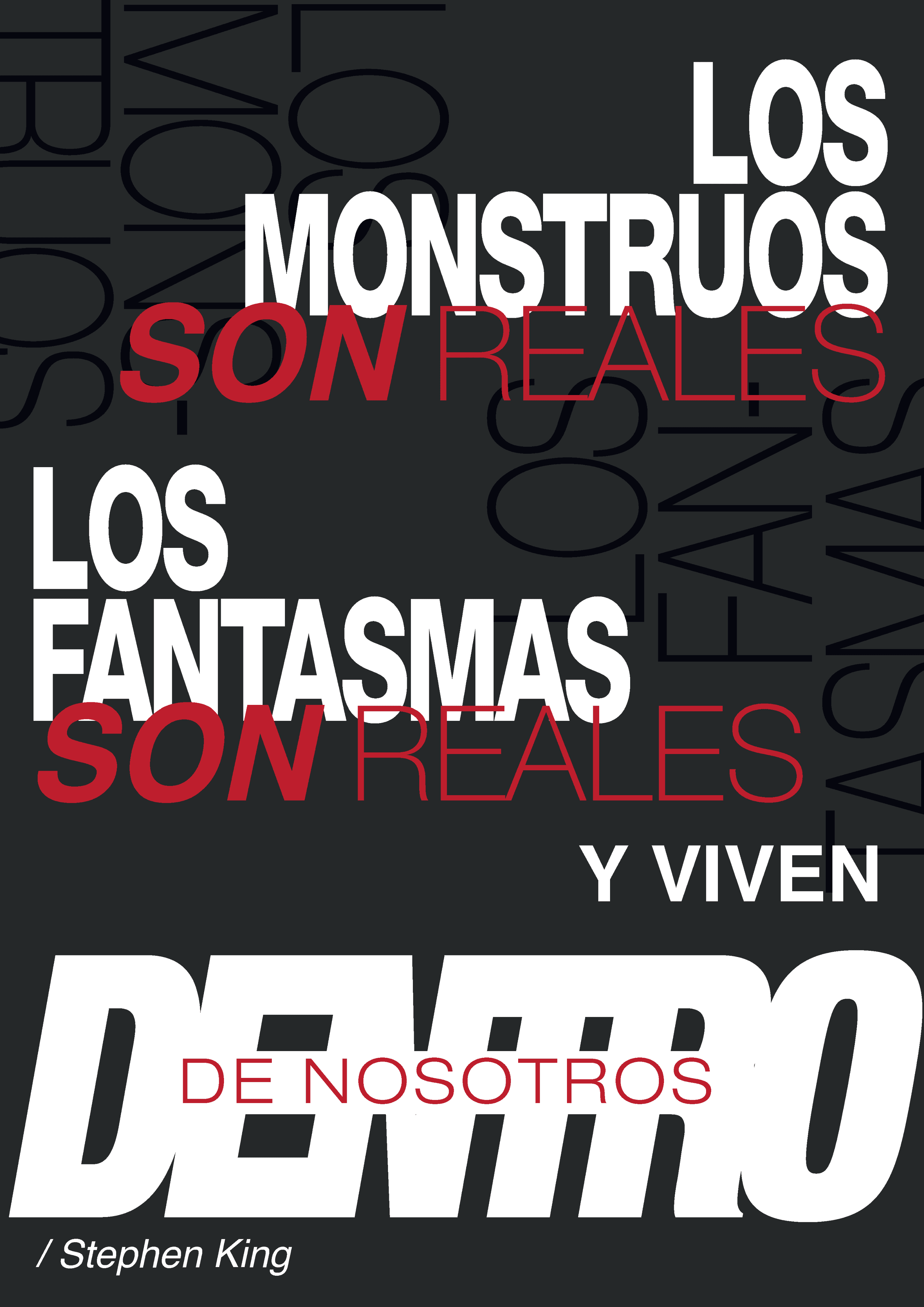 Estos son las dos imágenes realizados por mi, la primera a la izquierda es la portada de este díptico y al lado esta el poster que surge de la célebre frase de Stephen King: "Los monstruos y los fantasmas son reales, y habitan dentro de nosotros". Se buscaba provocar un eco y un final vistoso.