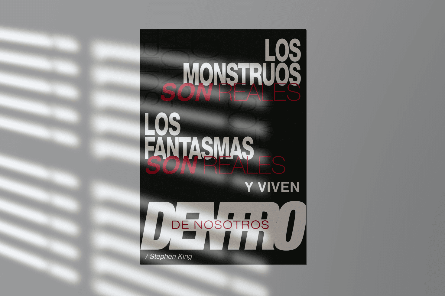 En este proyecto tuve la oportunidad de explorar uno de mis mayores gustos: la literatura de terror, en particular la obra de Stephen King. Este proyecto fue grupal y me involucré en la creación de la portada y el póster trasero, que incluye una frase del autor.